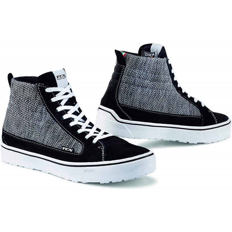 TCX STREET 3 AIR - это удобные мотокеды, обладающие прекрасной вентиляцией. Ваши ноги всегда будут сухие, какой бы стиль вождения Вы бы не использовали. При пошиве мотокед на заводе используется натуральная замшевая кожа. В сочетании с сетчатой тканью и классической шнуровкой и белой подошвой мотокеды TCX имеют вид стильной 'гражданской' обуви. У TCX STREET 3 AIR прекрасная и надежная защита ног благодаря многоуровневой структуре, состоящей из антибактериальной съемной стельки, которая подавляет вибрации, и вставок на носке, в пятке и в районе лодыжки. Стопа защищена от сдавливания и сминания прочной подошвой, которая производится из термопластика. Эта подошва устойчива к износу, разрыву и сжатию, что предельно важно при управлении мотоциклом. Отдельного внимания заслуживает съемная анатомическая стелька - это верх комфорта! Ноги не устают и всегда под защитой в любой дорожной ситуации.rnrnЗащита: вставки на носке, пятке и в районе лодыжки. Жёсткая прочная подошва защищает стопу от сдавливания.