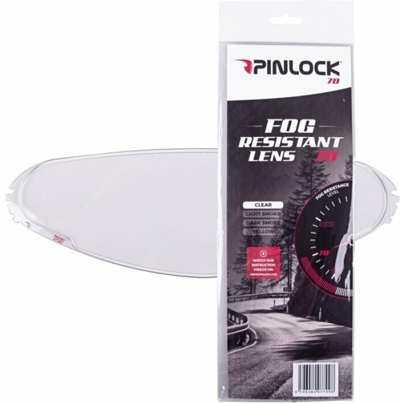 Pinlock 70 - это превосходное противотуманное решение для мотоциклистов. Усиленные противотуманными свойствами вставная линза имеет увеличенную стойкость к запотеванию, что помогает гонщикам лучше видеть в сложных погодных условиях. Pinlock 70 создает систему двойной защиты через силиконовое уплотнение между лицевой защитой шлема и вставной линзой Pinlock, которая образует двойное стекло, предотвращающее запотевание. Вставка изготовлена из влагопоглощающего пластика, поэтому при использовании поверхность быстро высыхает. Этот герметичный пакет позволяет значительно снизить разницу температур. Вставка Pinlock впитывает влагу изнутри и обеспечивает постоянную четкую видимость.