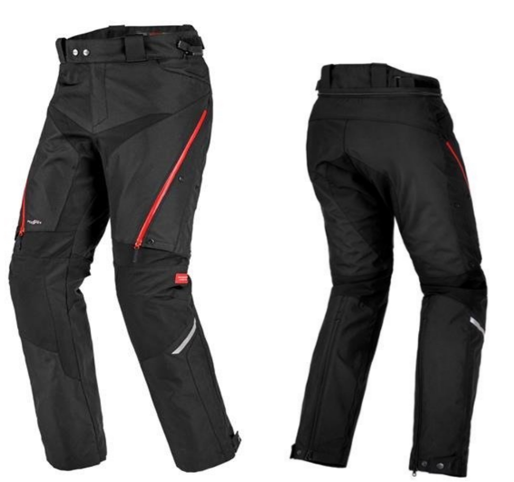 Брюки 4 Season Evo имеют сертификацию CE по стандарту En 17092-4:2020 класса A, оснащены съемными протекторами Multitech в области коленей и бедер, сертифицированными по стандарту EN 1621-1:2012 . Защита коленей также регулируется (10 см), чтобы найти правильное положение для анатомии и стиля езды каждого гонщика. Брюки также оснащены системой Step-In Wear System — водонепроницаемой мембраной H2Out® 5K/5K, которую можно носить внутри брюк в дождливую или холодную погоду. Две большие вентиляционные панели стратегически расположены в положении, где вентиляция и транспирация находятся на максимальном уровне в положении водителя. Имеются отражатели 3M® Scotchlite® для превосходной видимости в ночное время, а также имеется молния, соединяющая куртку с брюками для дополнительной безопасности. Двойные молнии YKK® внизу штанин позволяют носить брюки поверх туристических ботинок или под ними.